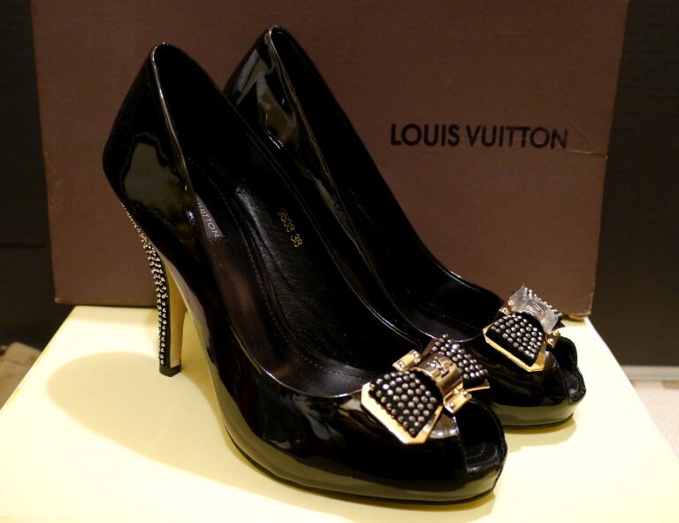 LOUIS VUITTON (ルイヴィトン) ミクロスタッズ リボンデザイン パテントレザー パンプスです。