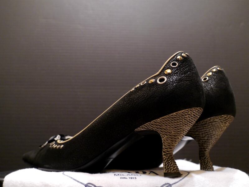 ◆PRADA プラダ スタッズ リボン デザイン パンプス 黒◆