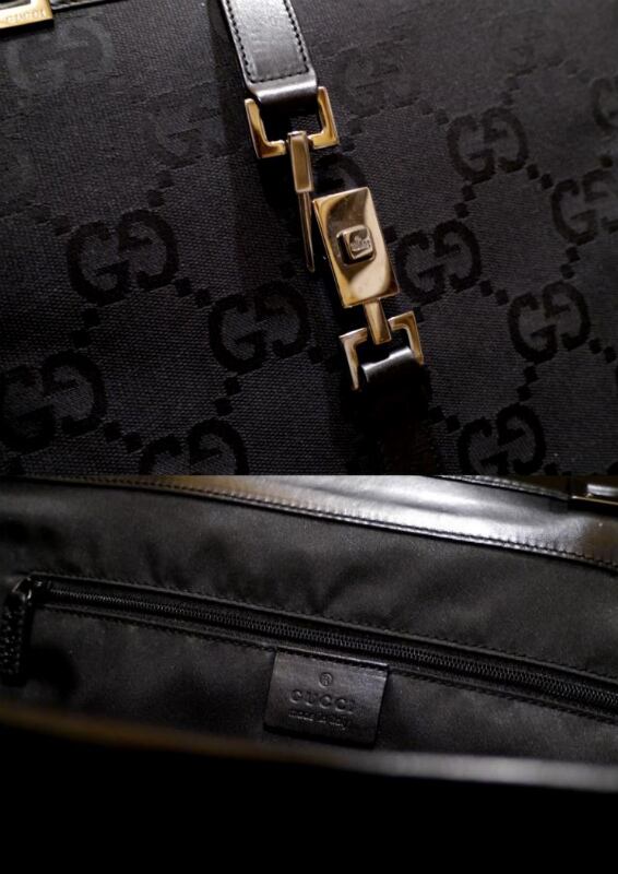 カジュアルになりがちなキャンバス素材も、上質なレザーとのコンビやジャッキーの象徴でもある金具、シックな色味のGG柄でGUCCIのアイテムらしくとても高級感のある仕上がりです。