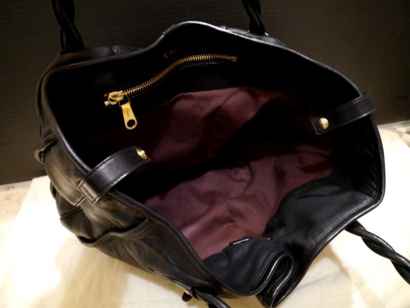開口部両サイドのベルトの開閉によりバッグの形自体が変形する面白いデザインで、荷物はたくさん入りハンドルは肩掛けも可能なので使い勝手も素晴らしいと思います。