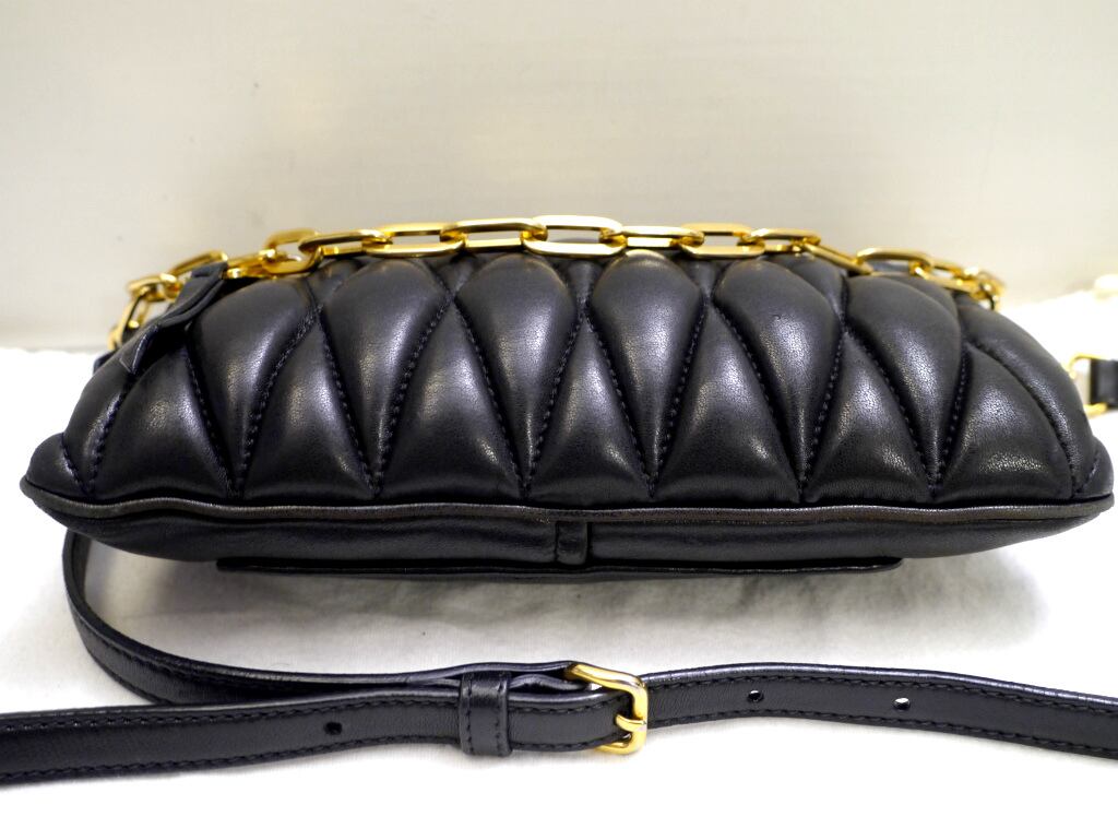 美品★miu miu ミュウミュウ NAPPA BIKER ナッパバイカー 2way クロスボディ レザー ショルダー バッグ 黒x金★ 大人気のバイカーライン♪