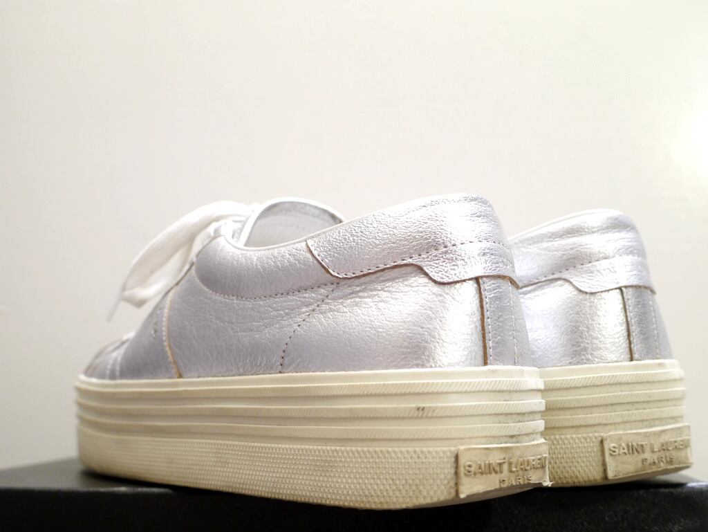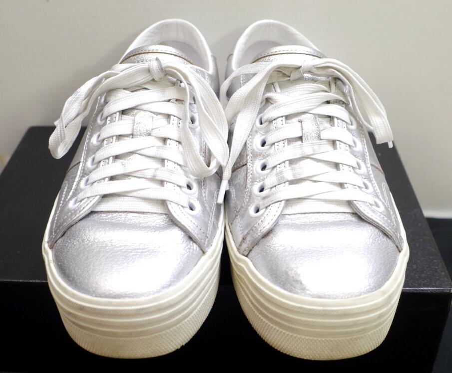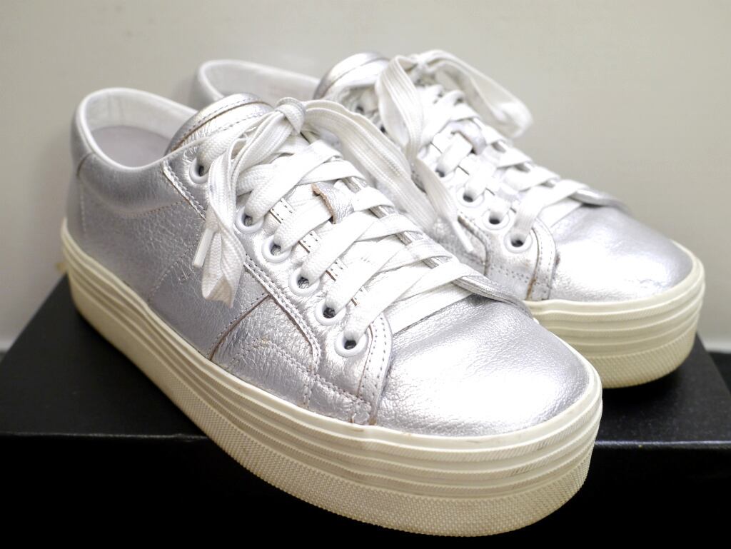 美品◆SAINT LAURENT PARIS サンローラン SL/39 レディース 厚底 ボリューム レザー スニーカー 36 銀◆ スタイリッシュなYSL定番モデル♪