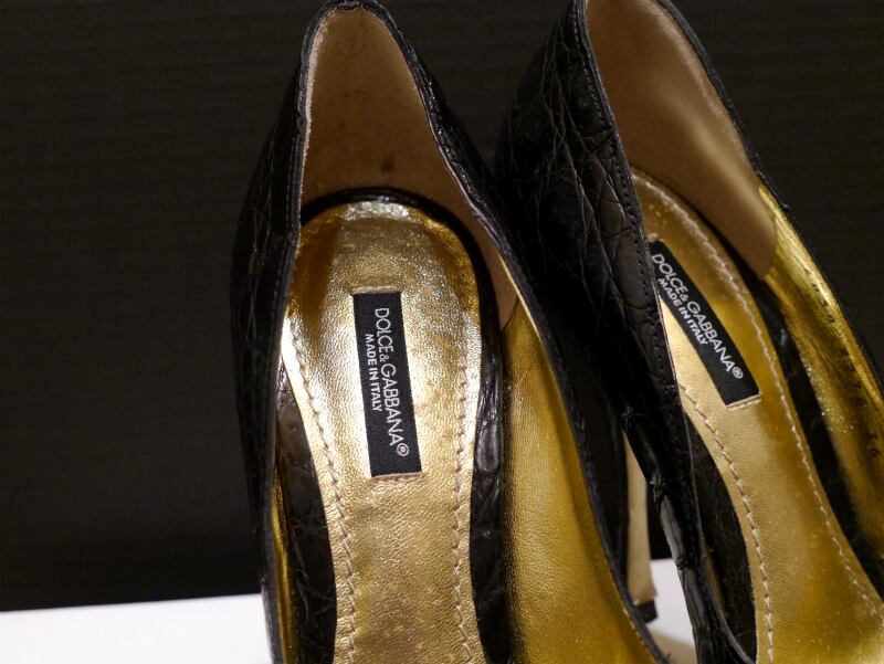 DOLCE & GABBANA (ドルチェ&ガッバーナ) クロコ型押しデザイン オープントゥ レザー パンプスです。