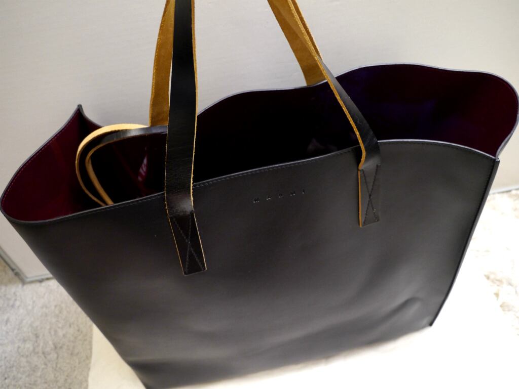 美品18万◆MARNI マルニ 大容量 男女可 レザー ショッパー トート ハンド バッグ 黒◆ 上品さと遊び心が共存するMARNIらしいお洒落なモデル
