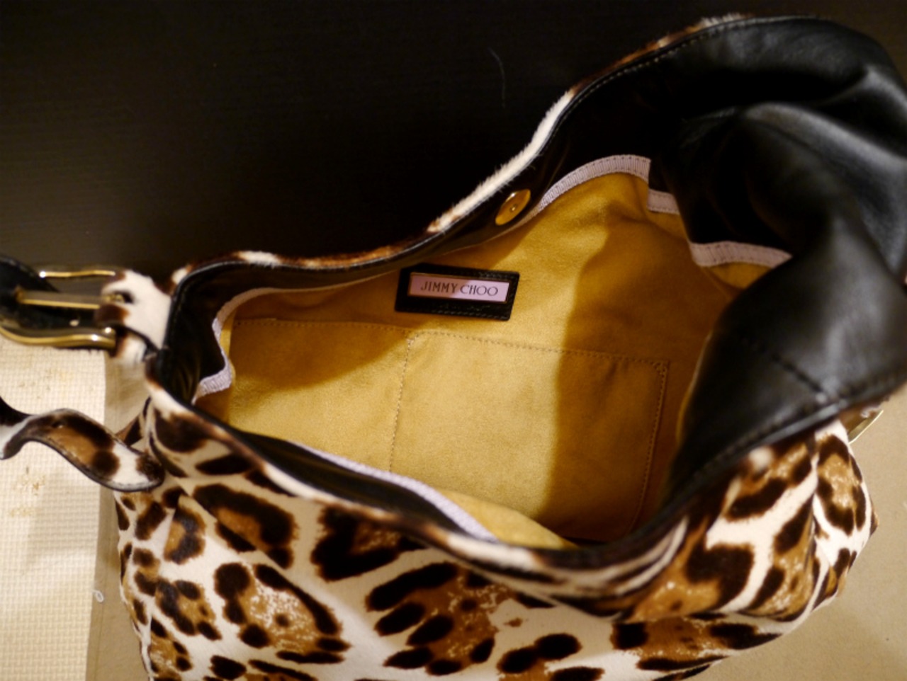 JIMMY CHOO(ジミーチュウ) アシンメトリーデザイン ハラコ素材 レオパード柄 ワンショルダーバッグです。