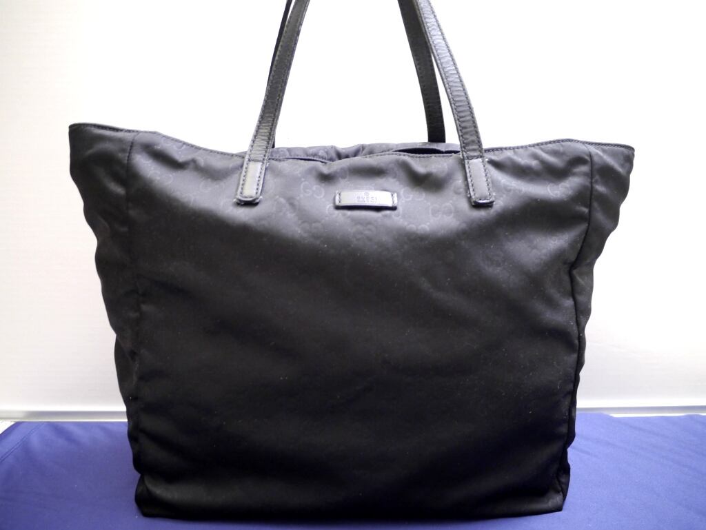 12万◆GUCCIグッチ GGライン ユニセックス A4対応ビジネス可 ナイロンxレザー トートハンド バッグ 黒◆ 通勤・通学にも大活躍のトート型♪