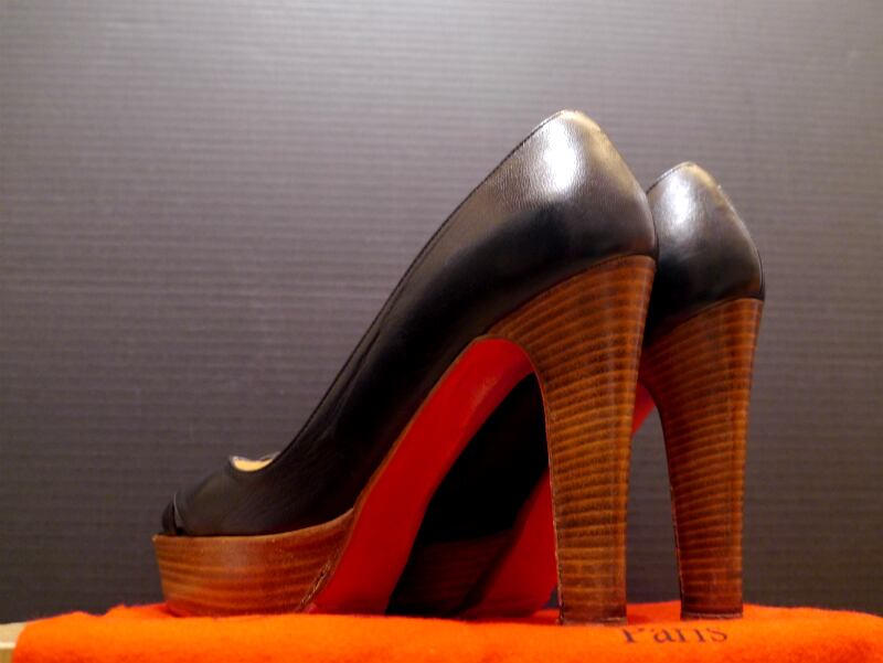 ★クリスチャンルブタン コルクウェッジ レザー パンプス 黒 36★