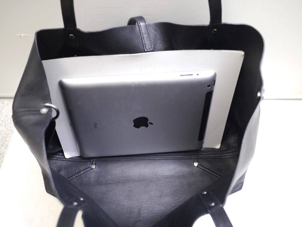 A4用紙やタブレットもスッポリと収まるシンプルなトート型で荷物はたくさん入り、付属のポーチは何かと便利で使い勝手も素晴らしいと思います。