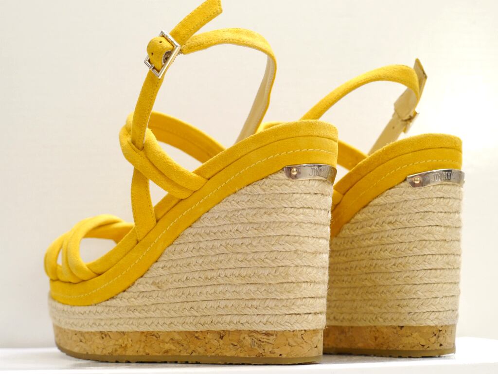 美品6万★JIMMY CHOO ジミーチュウ エスパドリーユ コルクウエッジ バックストラップ サンダル 37 黄★ 可憐なイエローが春夏にピッタリ♪