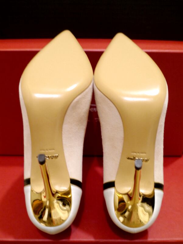 Salvatore Ferragamo(サルヴァトーレ・フェラガモ) スエードxレザー マルチカラー ポインテッドトゥ ヒールパンプスです。