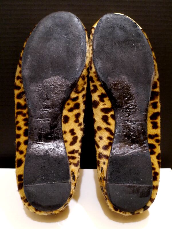 Yves Saint Laurent(イヴ・サンローラン) ハラコ素材 メタルプレートxレオパード フラットパンプスです。