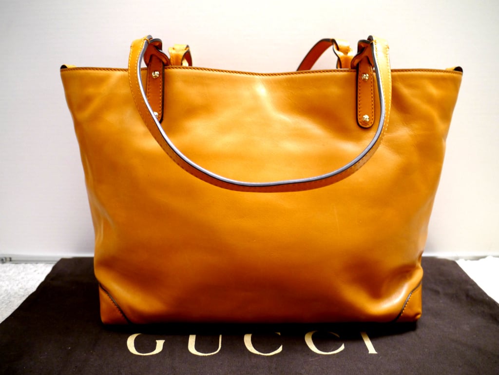 美品◆GUCCI グッチ CRAFT クラフト A4対応 ビジネス可 レザー トート ハンド バッグ 明茶◆付属のポーチも便利な定番スタイリッシュモデル