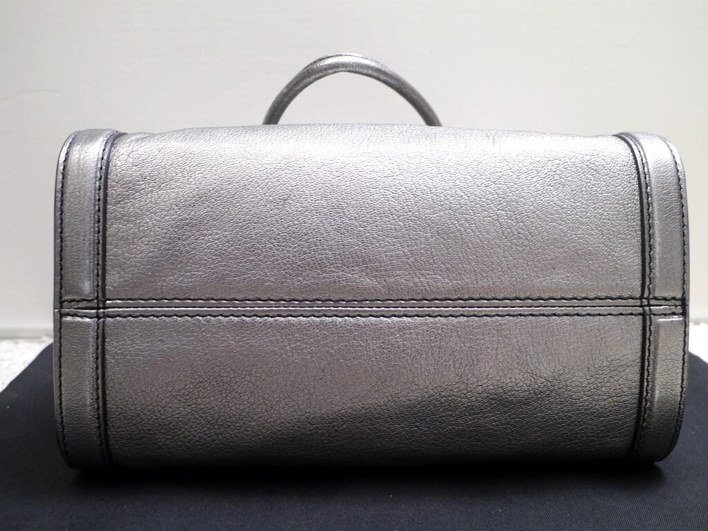 美品18万★AlexanderMcQUEEN アレキサンダーマックイーン スカルチャーム ミニボストン型 レザー トート バッグ ★ 希少なシルバーモデル♪