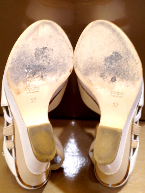 美品◆GUCCI グッチ マルチカラー ウェッジ レザー サンダル 白◆