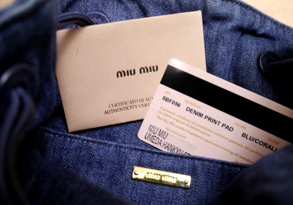 どこか懐かしさを感じさせるデニム素材はとても可愛らしく、フラワープリントやお馴染みの【miumiu】ロゴがワンポイントでキラリと輝きます。