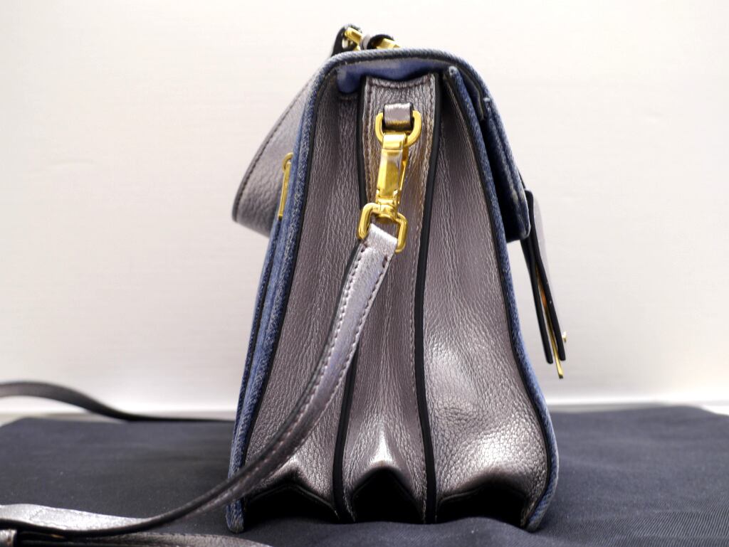 2017美品★miumiu ミュウミュウ MADRAS マドラス デニム ハンドショルダー2way バッグ 青銀★ クラシックな雰囲気が可愛らしい人気モデル♪
