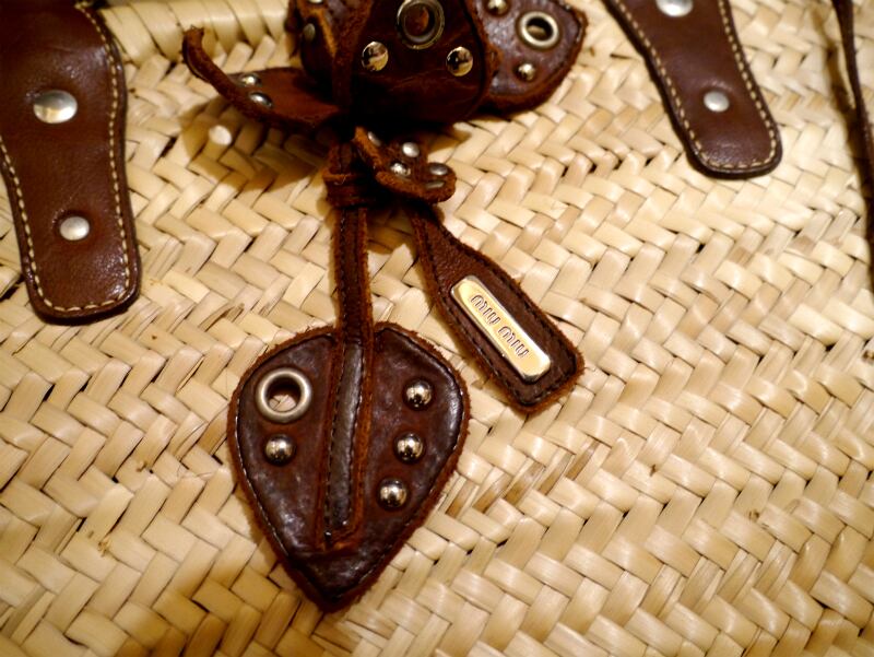 定番★miumiu ミュウミュウ レザーxストローデザイン かごバッグ