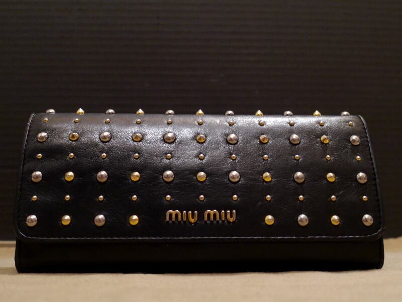 美★miumiu ミュウミュウ スタッズデザイン レザー 長財布★