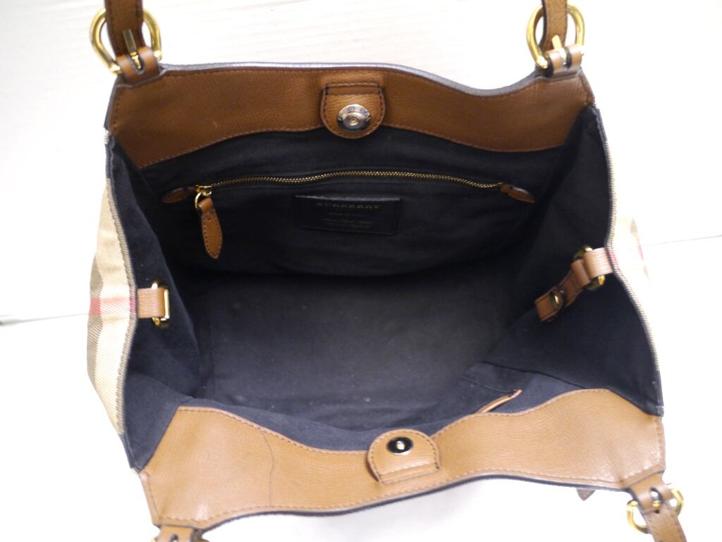 2017美品★BURBERRY バーバリー ファントムライン キャンバスxレザー切替 トート ハンド バッグ 茶★ 希少なファーストラインの秀逸モデル