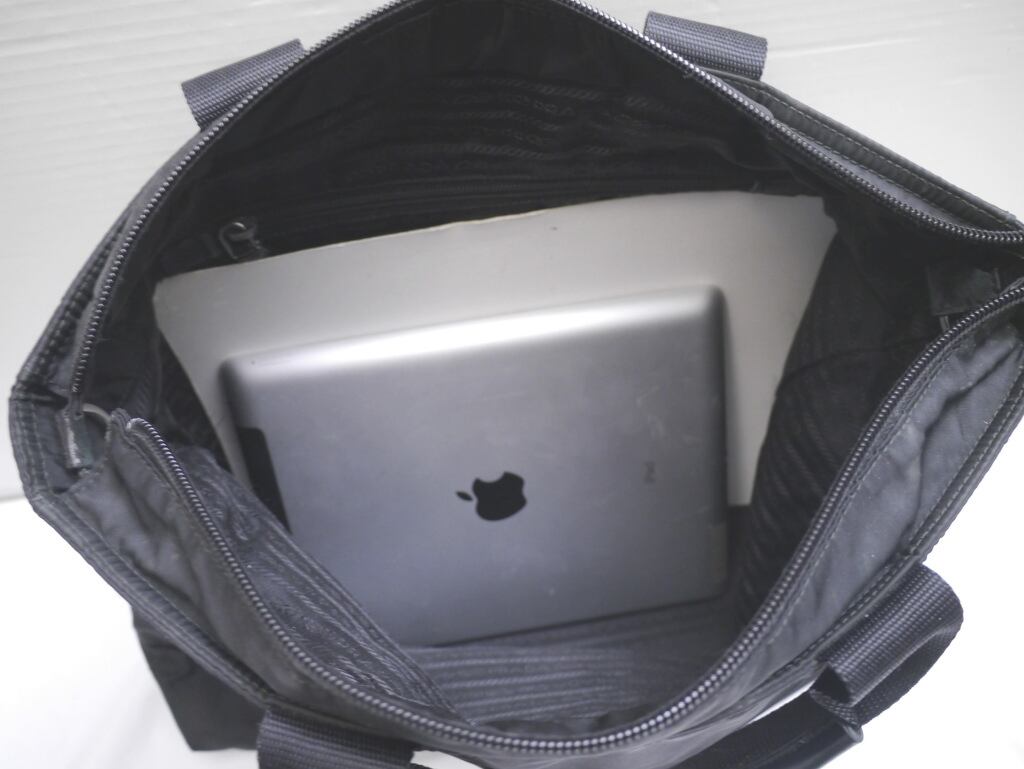 カジュアルになりがちな素材感もPRADAのアイテムはどこか高級感が漂い、とても軽いので普段使いはもちろん、A4サイズの書類やタブレット端末等もスッポリと収まる使い勝手の良い絶妙なサイズ感なのでシーンを問わず大活躍すると思います。