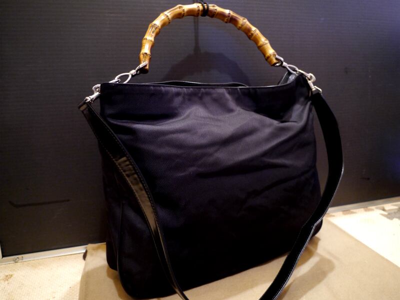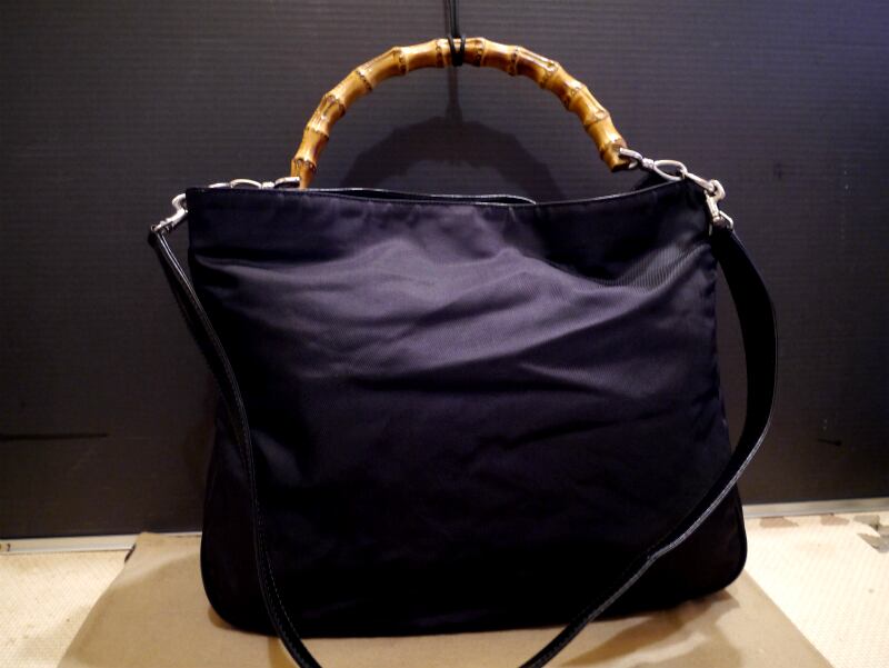美品◆GUCCI グッチ バンブー ハンドショルダー2way ナイロン バッグ 黒◆