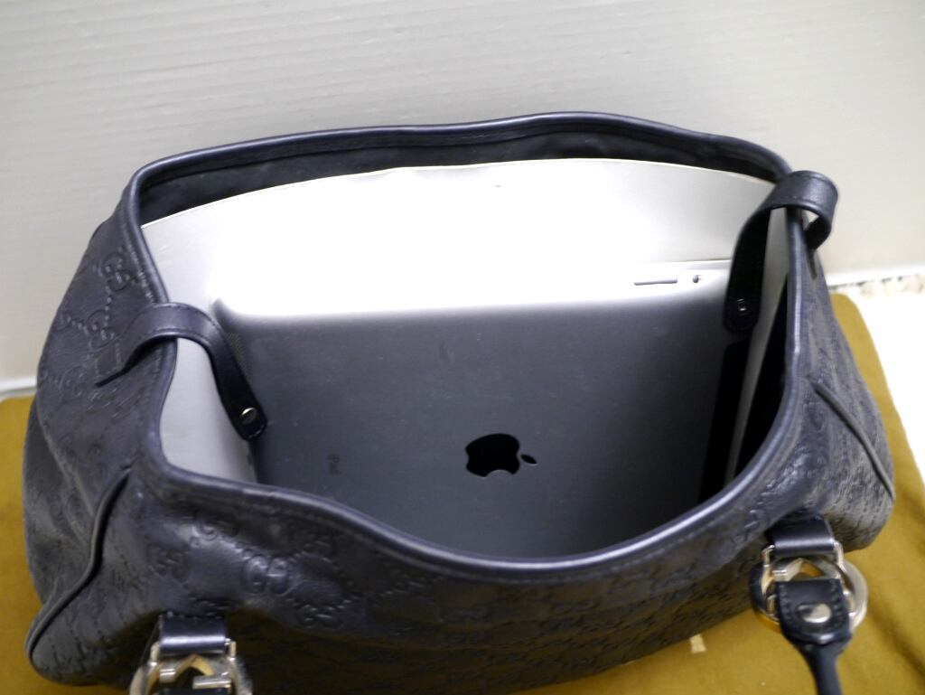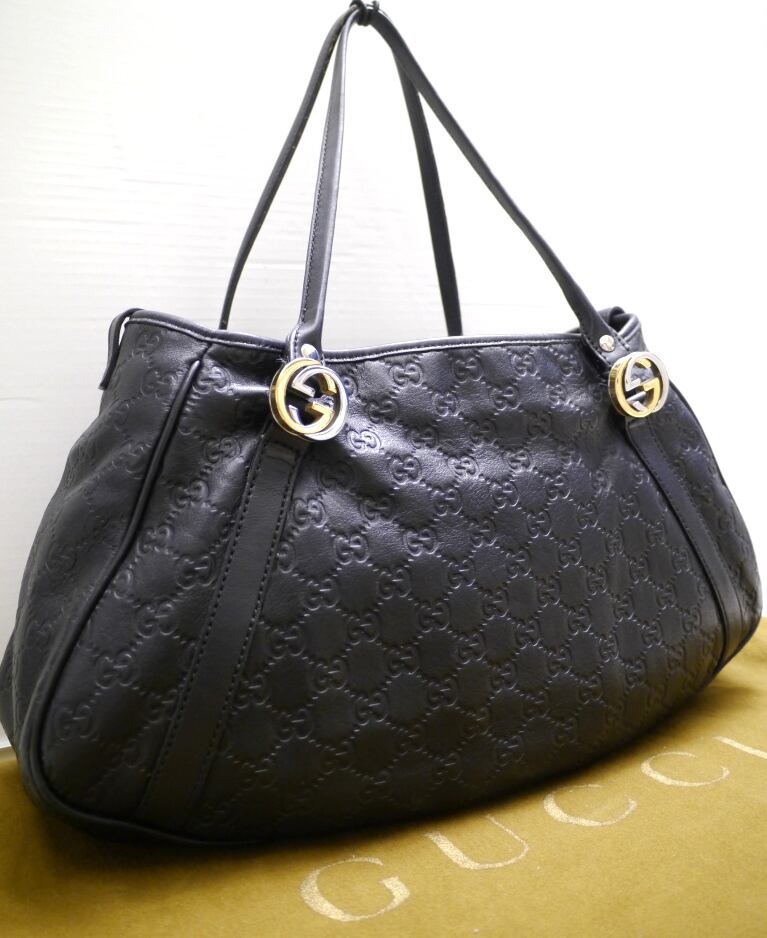 美品◆GUCCI グッチ シマ GGツインズ ビジネス対応 エンボス加工 レザー トート ハンド バッグ 黒◆ 上質な型押レザーが主張するGG TWINS♪