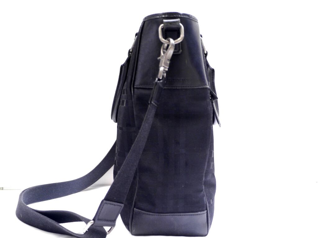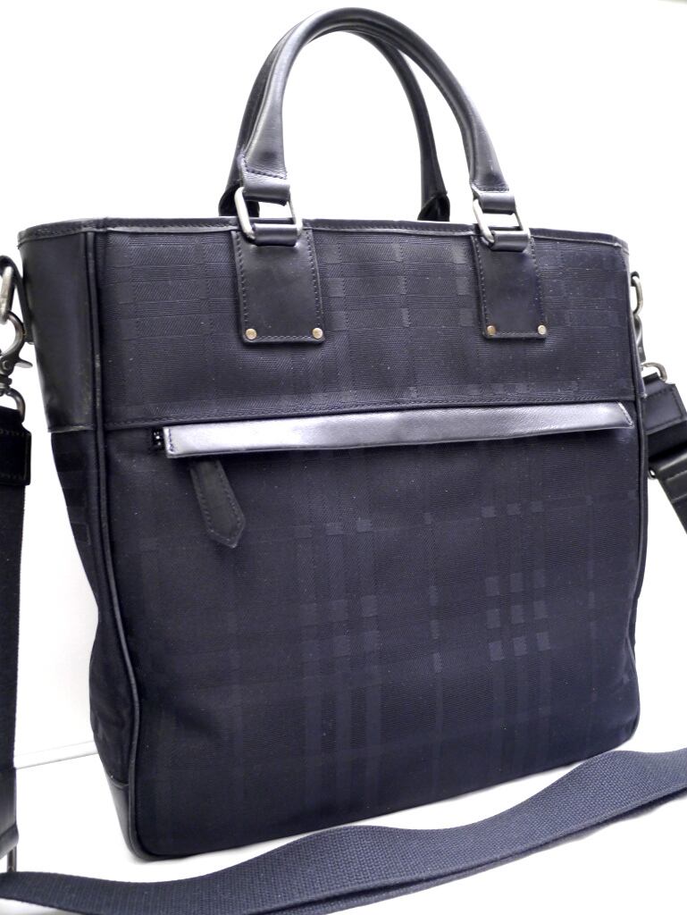 美品◆BURBERRY バーバリー A4対応 ビジネス可 ジャガード レザーxキャンバス 2way トート バッグ 黒◆ ビジネスシーンでも大活躍の定番♪