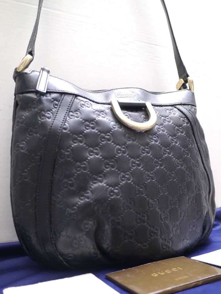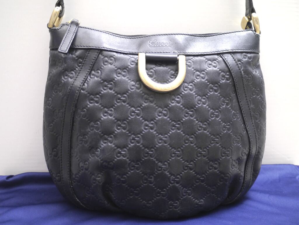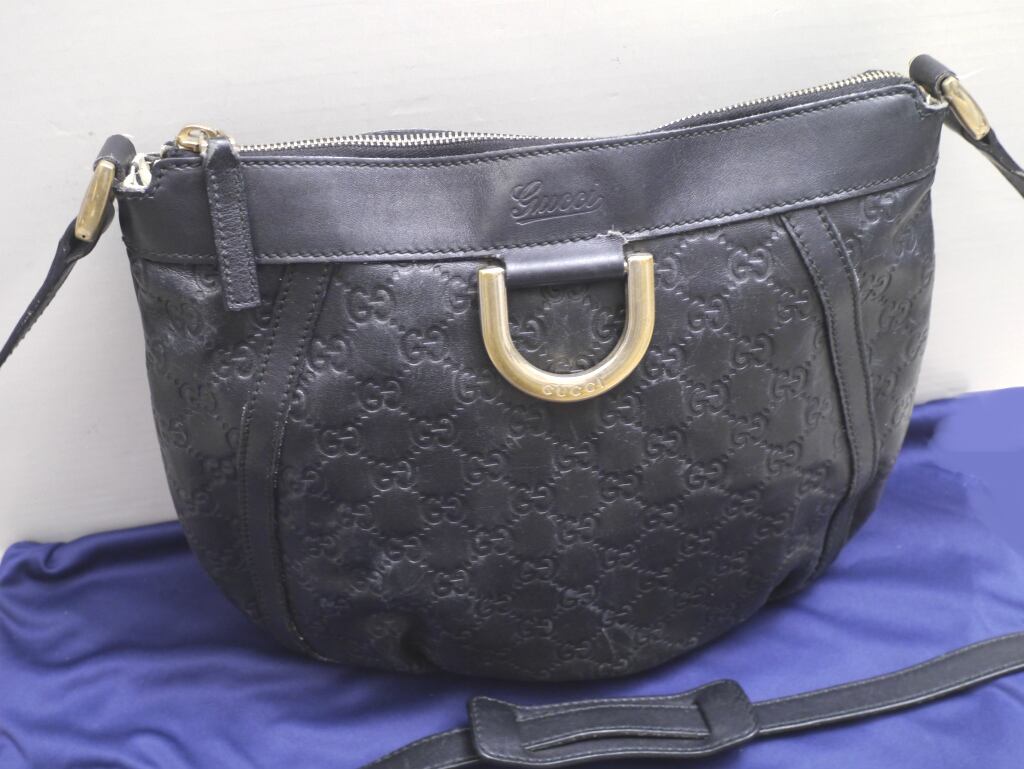 レア◆GUCCI グッチ シマ ABBEY アビー GGエンボス 型押 レザー ショルダー トート バッグ 黒◆ 斜めがけも可能の希少なショルダーモデル♪