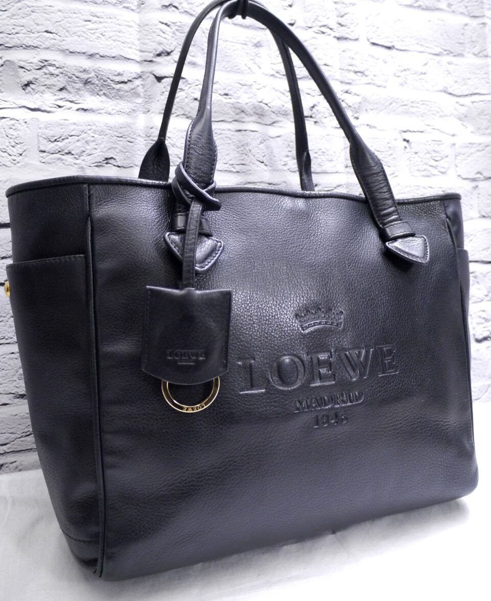 美品18万◆LOEWE ロエベ HERITAGE ヘリテージ A4対応 レザー トート ハンド バッグ 黒◆ シンプルな佇まいに型押ロゴが映える人気ライン♪