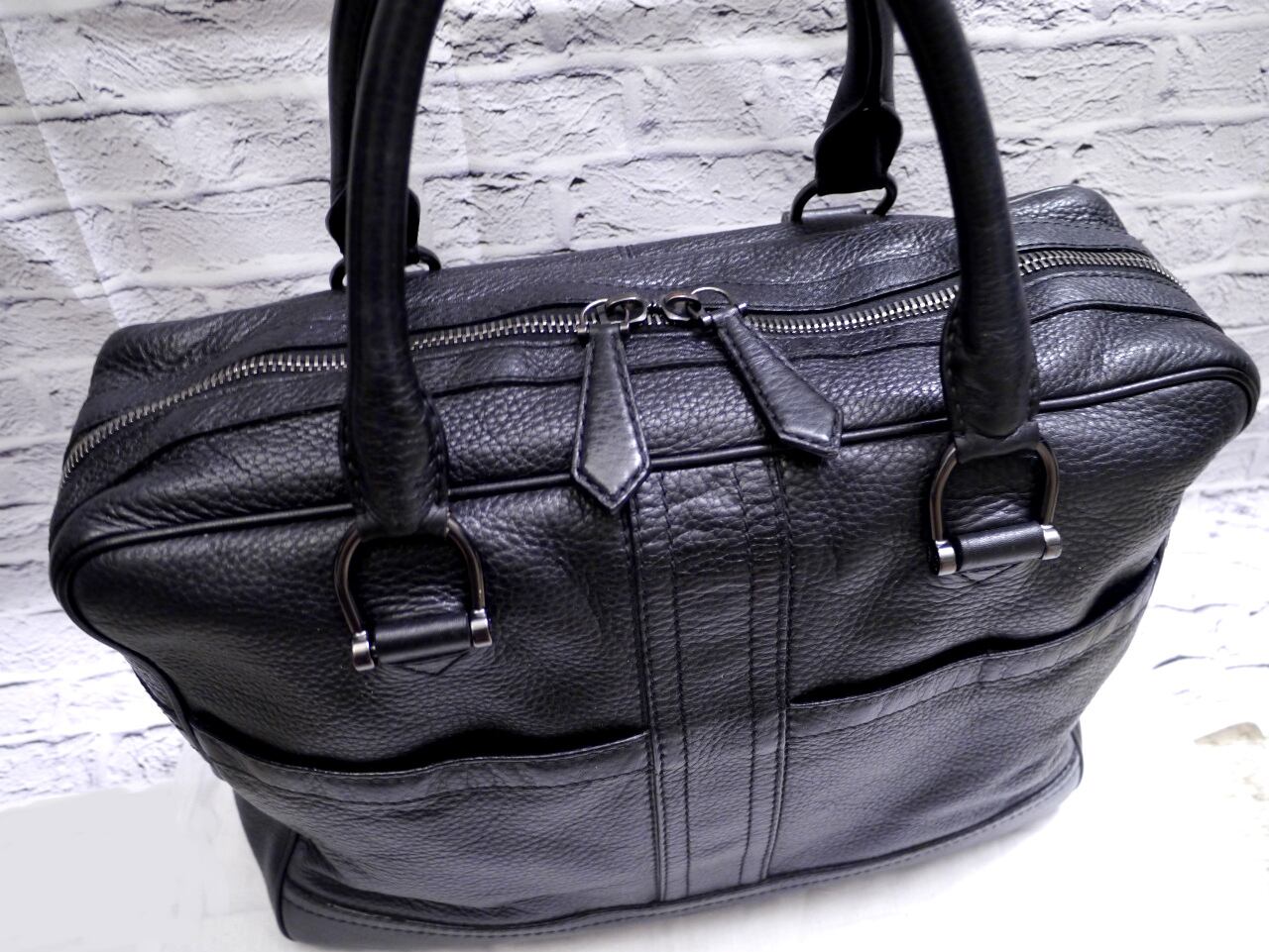 28万美品★BURBERRY PRORSUM バーバリープローサム 男女可 A4対応 ビジネス可 大容量 ボストン型 レザー バッグ 黒★ 希少な大容量モデル♪