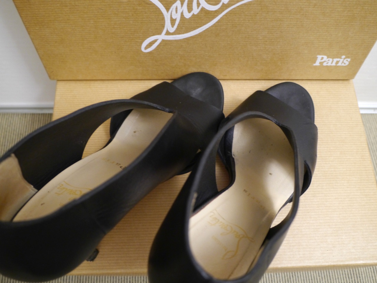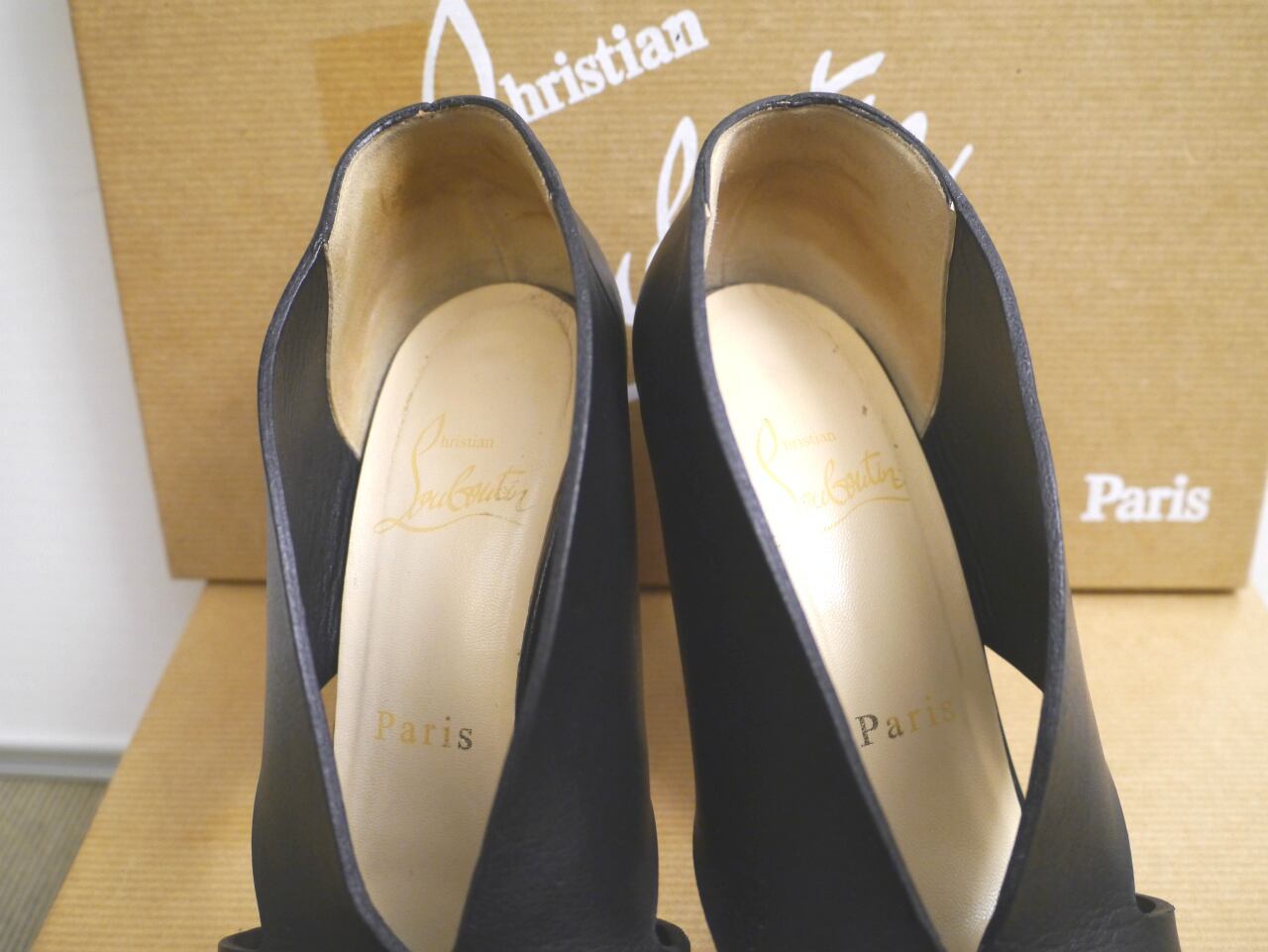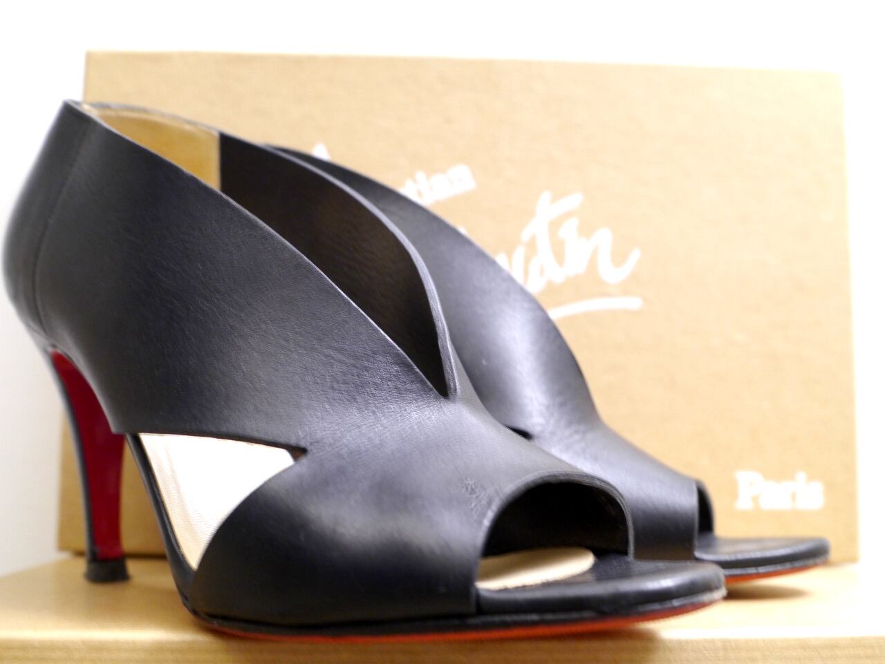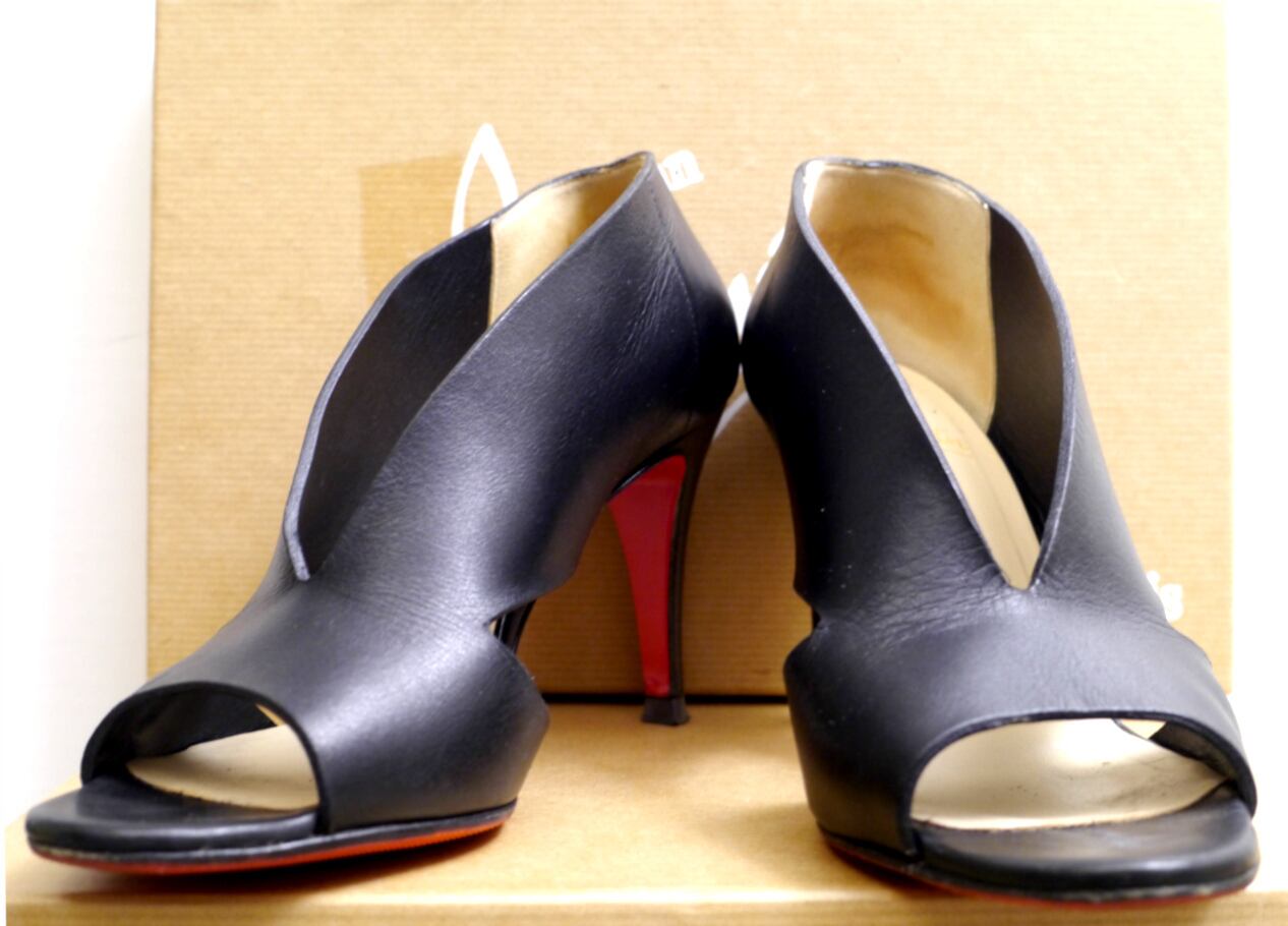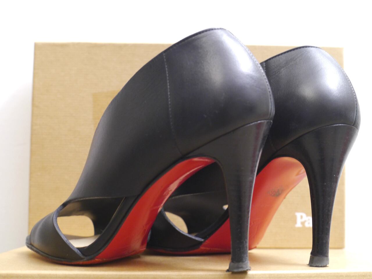 美品◆ChristianLouboutin クリスチャンルブタン オープントゥ レザー ブーティ サンダル 黒 36◆ レッドソールが主張する定番人気モデル♪