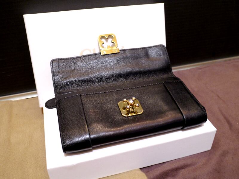美品◆Chloe クロエ エルシー L字型ジップ レザー 長財布 黒◆