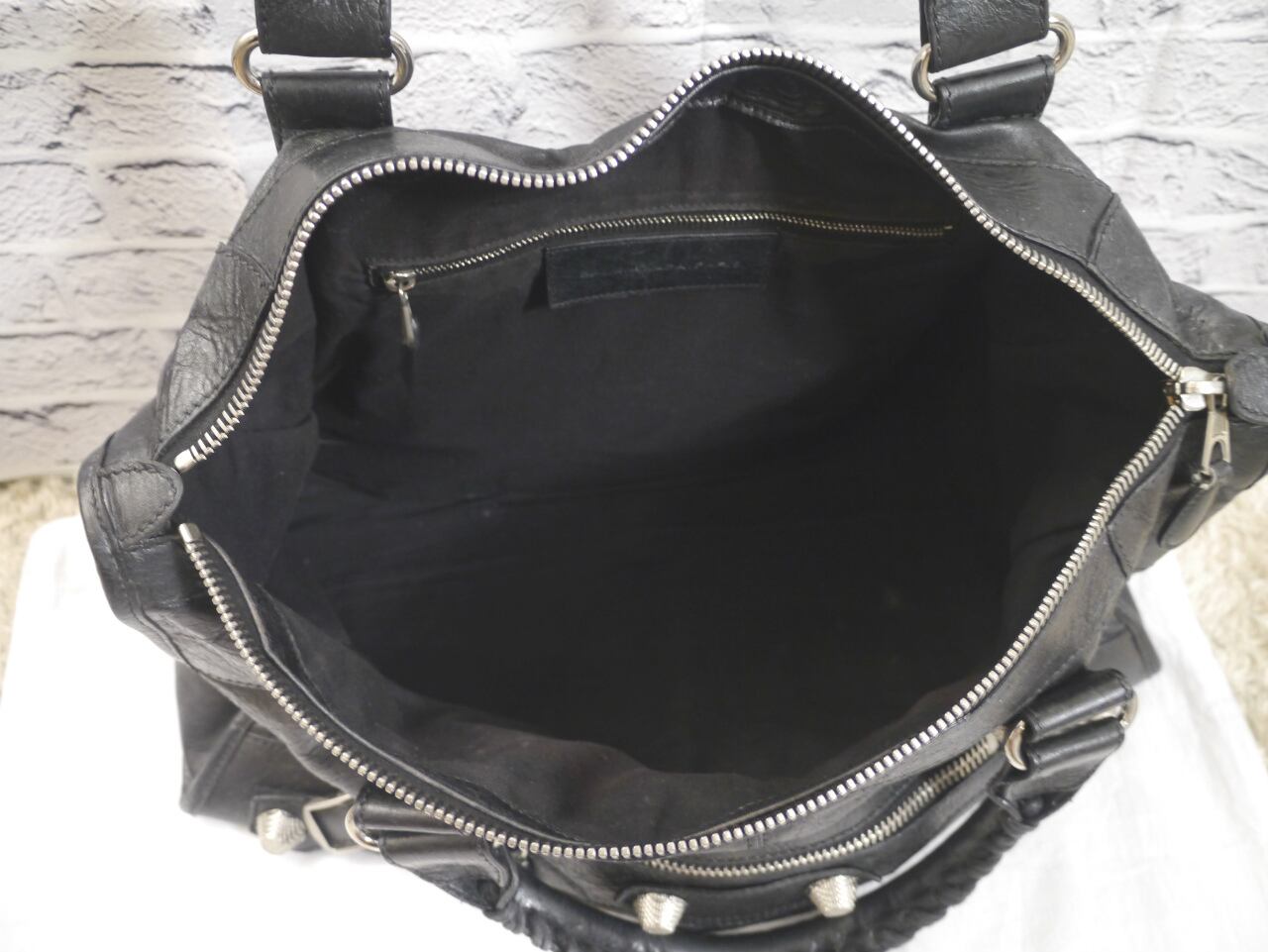 レア◆BALENCIAGA バレンシアガ GIANT WORK ジャイアントワーク 男女可 A4対応 レザー トート バッグ 黒x銀◆希少なジャイアントスタッズ♪