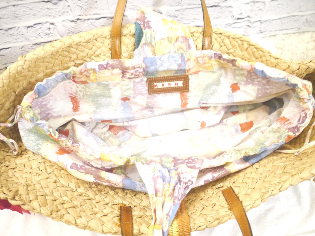 レア◆MARNI マルニ ラフィアxレザー切替 フラワーモチーフ 大容量 かご バッグ ナチュラル◆ 可愛らしい雰囲気のMARNI春夏の定番モデル♪