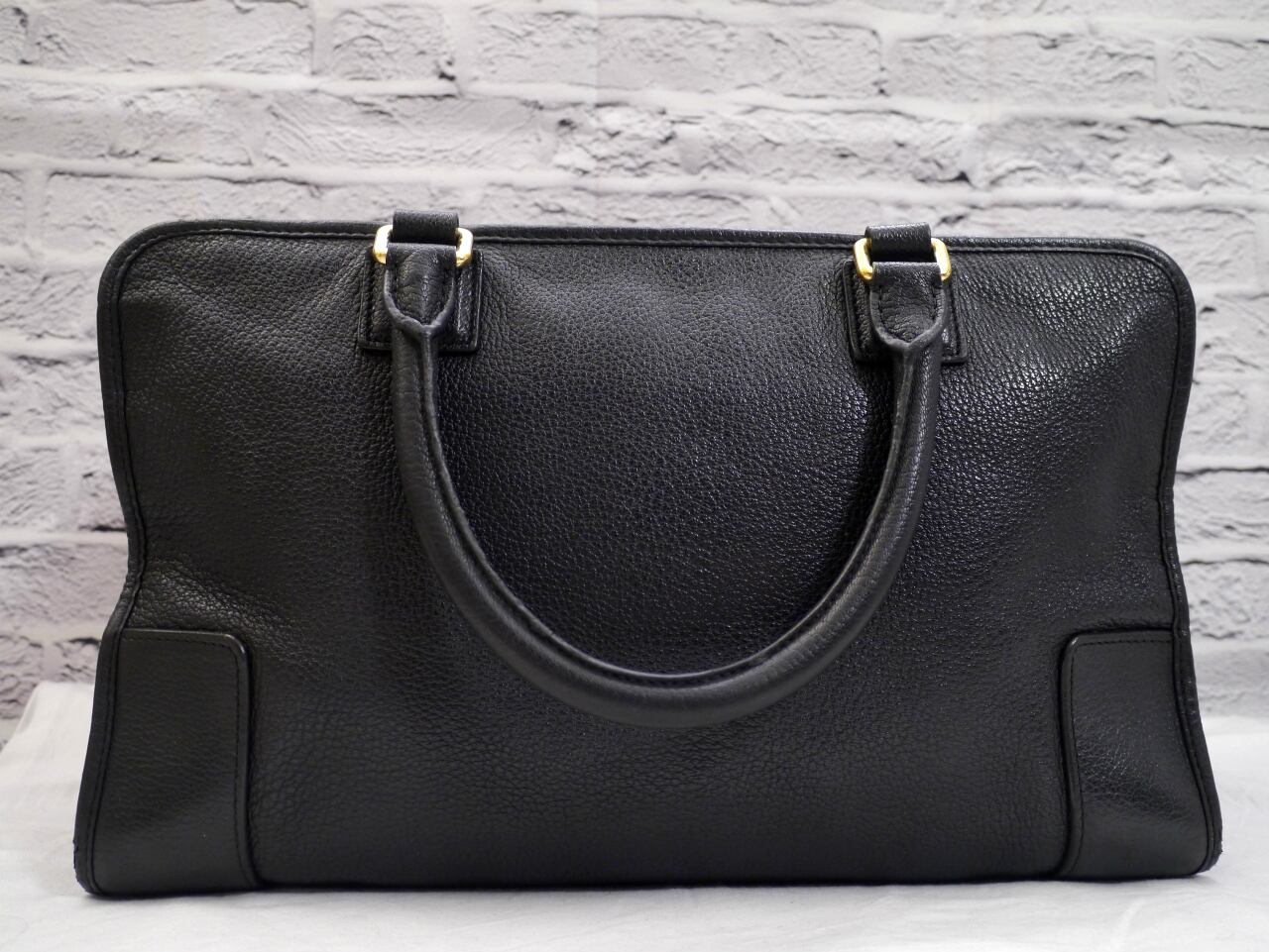 美品◆LOEWE ロエベ AMAZONA アマソナ 36 アナグラム エンボス ミニボストン型 レザー トート バッグ 黒◆ 使い回しに大活躍のブラック♪
