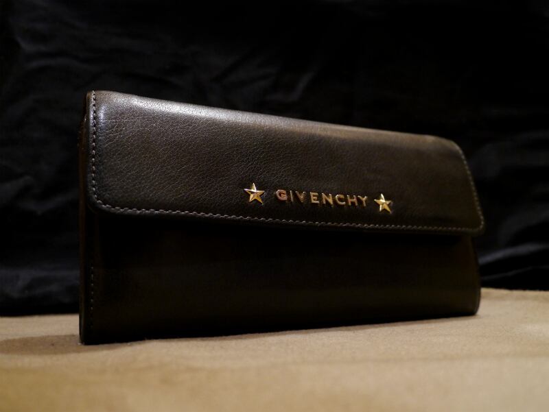 奇抜なデザインの多い印象ですが小物に関しては落ち着いた印象の物が中心で、こちらはシンプルなレザーにゴールドの★スタッズや【GIVENCHY】のロゴがさりげなく主張し、幅広い年代の方にご愛用頂けるデザインだと思います。