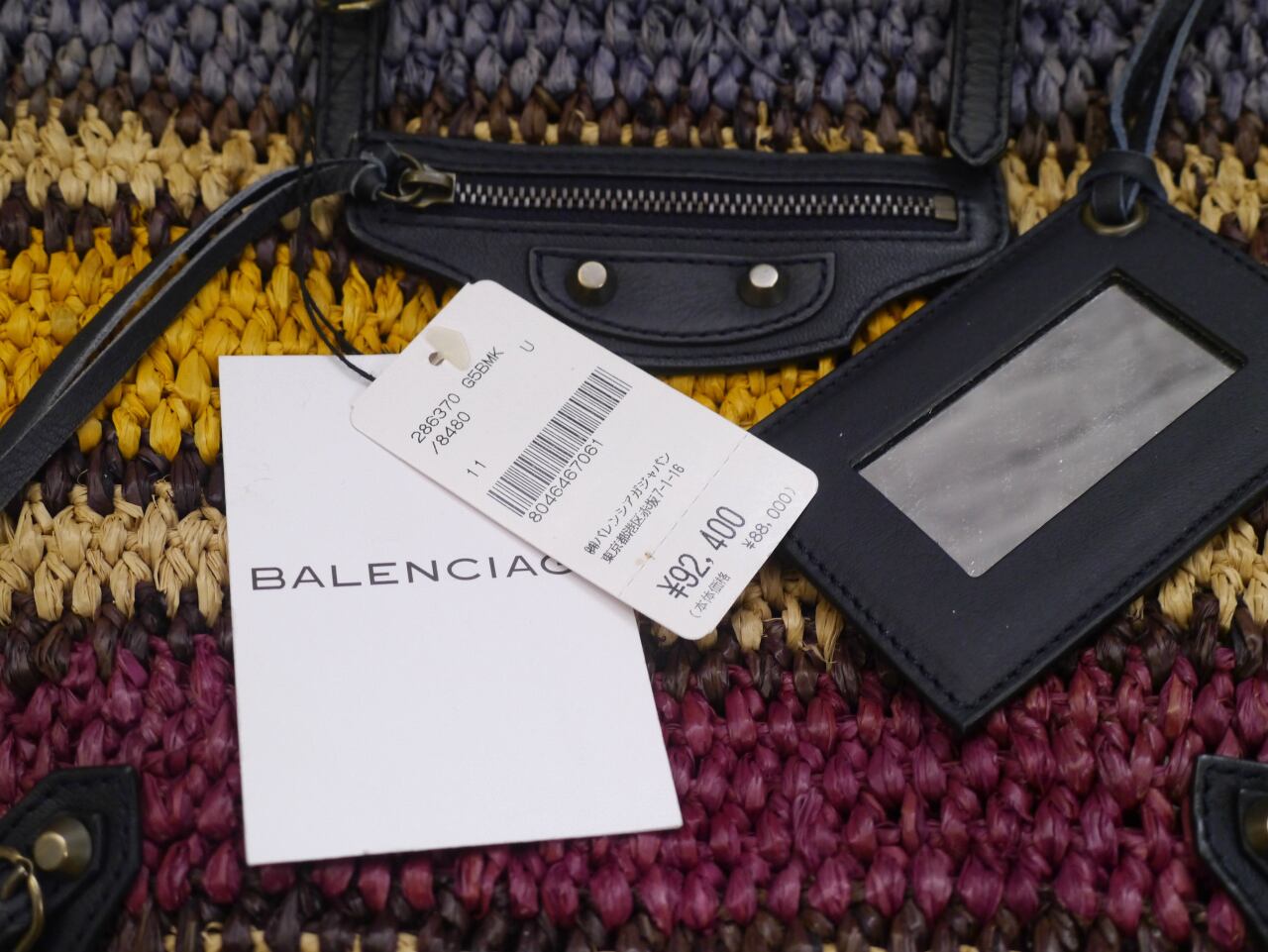 BALENCIAGA(バレンシアガ) PANIER(パニエ) マルチカラー ラフィアxレザー ペーパースタッズ かご トートバッグです。