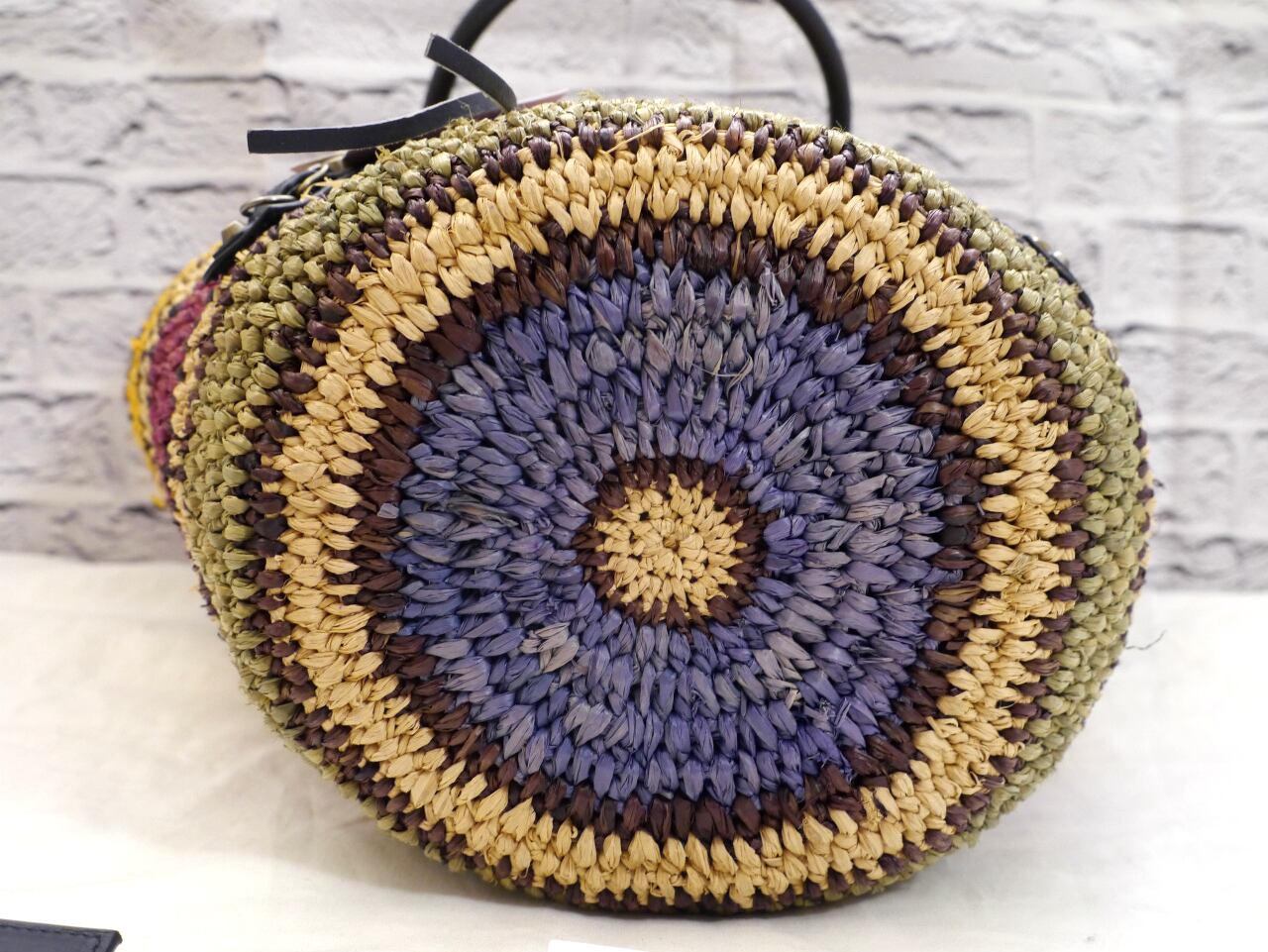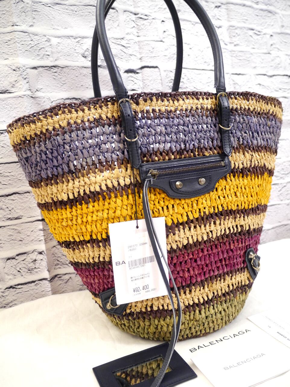 美品9.2万◆BALENCIAGA バレンシアガ PANIER パニエ ラフィアxレザー マルチカラー ペーパー かご バッグ◆希少なマルチカラーの定番モデル