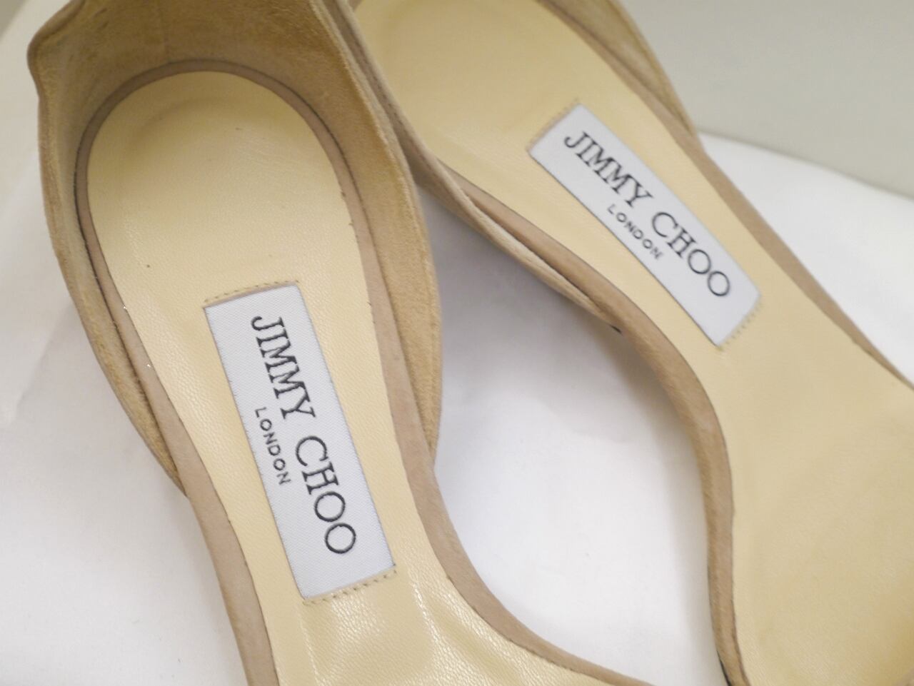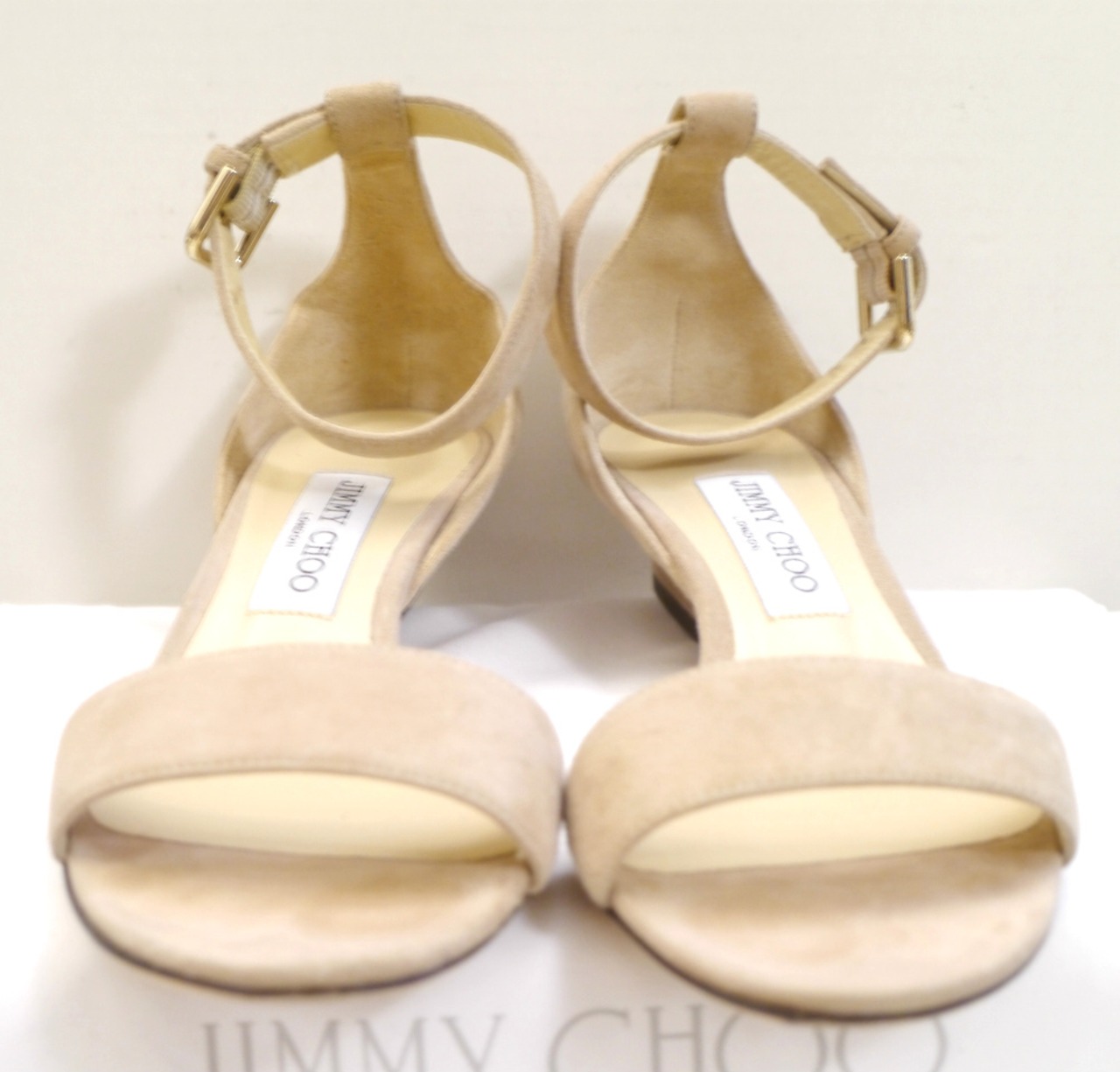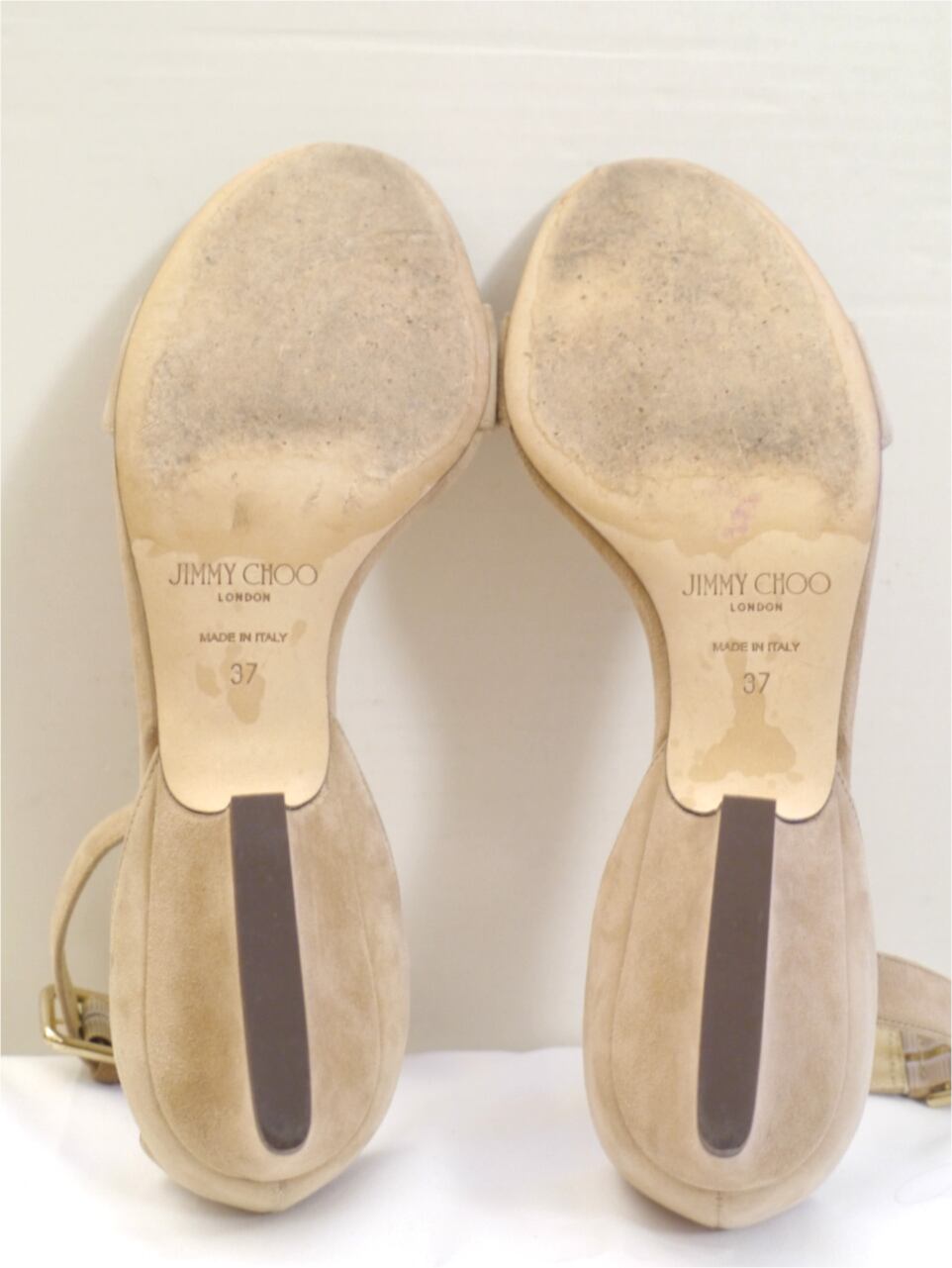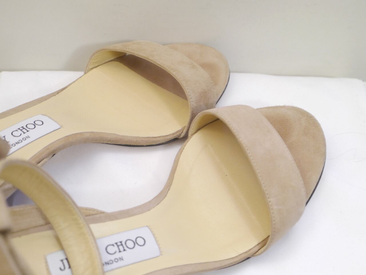 美品★JIMMY CHOO ジミーチュウ スエードレザー アンクルストラップ ヒール サンダル 37 BG★ 春夏にピッタリの上品なサンドベージュモデル