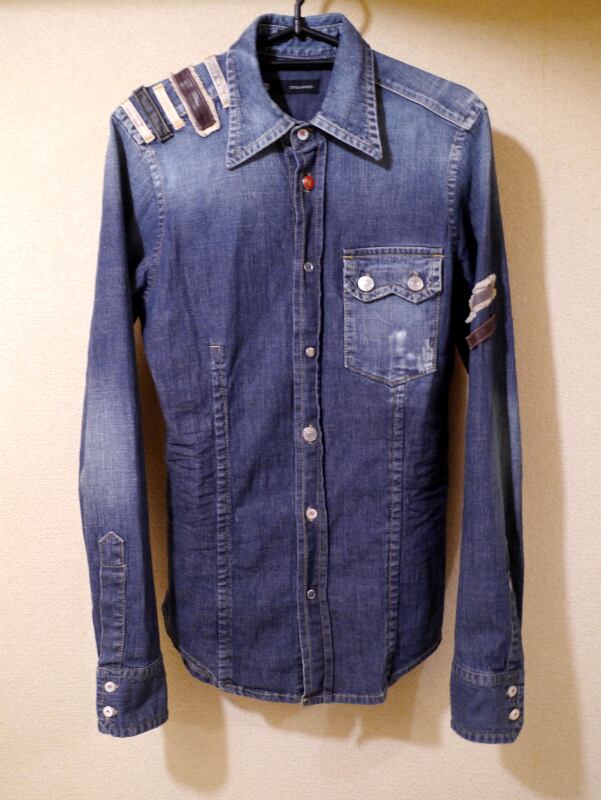 美品◆DSQUARED2 ディースクエアード USED加工デニムシャツ◆