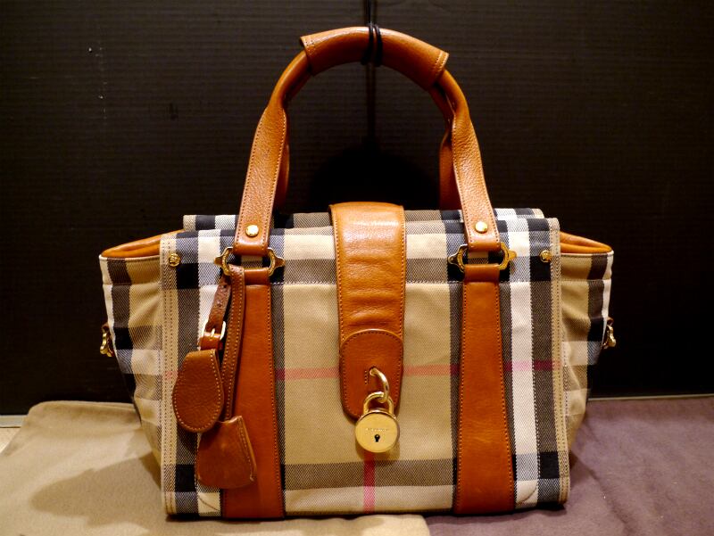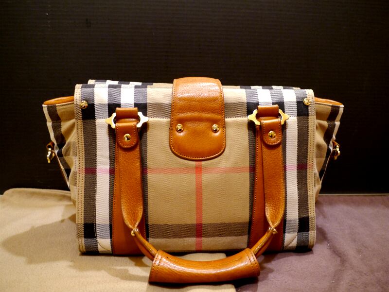 BURBERRY PRORSUM(バーバリープローサム) キャンバス x レザー切替 チェック柄 ハンドバッグです。