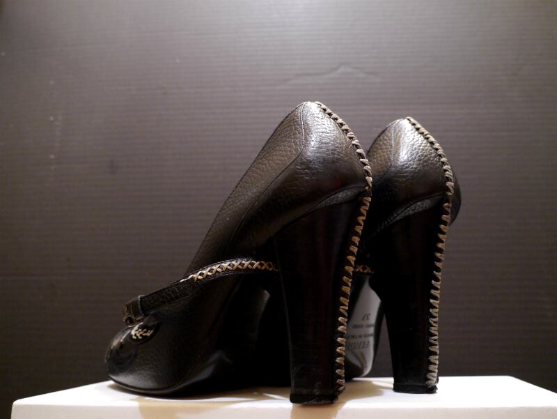 美品◆FENDI フェンディ レザー ヒール パンプス 37 黒◆ブーツ