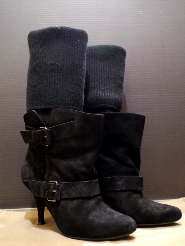 重くなりがちなブラックのブーツも上質なスエードとニットの柔らかな印象が温もりを感じさせ、カジュアル・シックどちらにも合わせやすいのでデイリーでご活用頂けます。