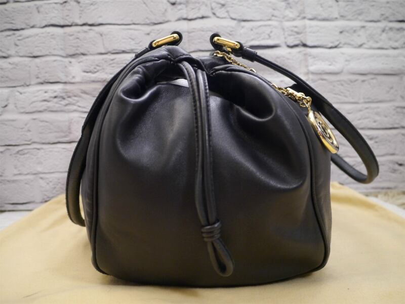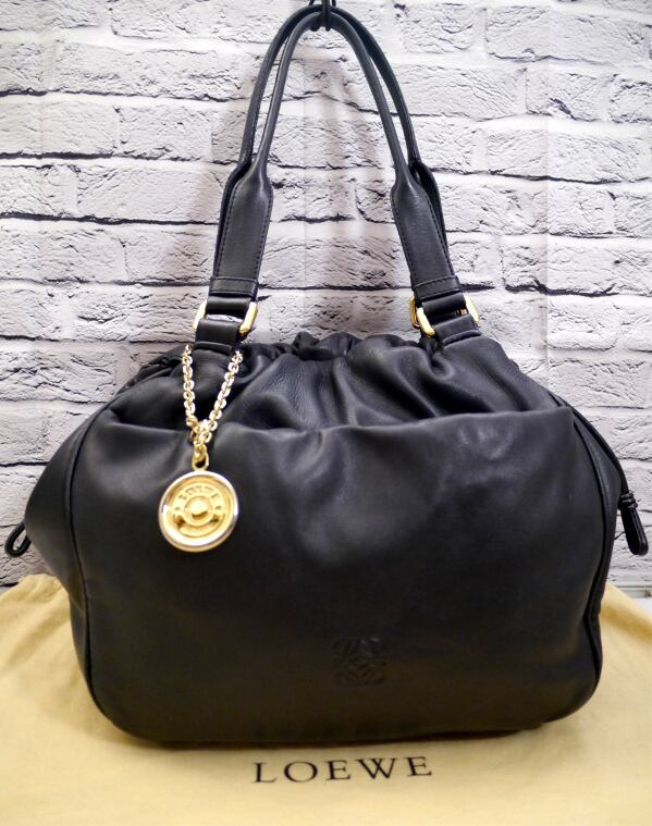 美品◆LOEWE ロエベ FLAMENCO フラメンコ アナグラム ナッパレザー 巾着型 トート ハンド バッグ 黒◆ アイコン的な可愛らしい定番モデル♪