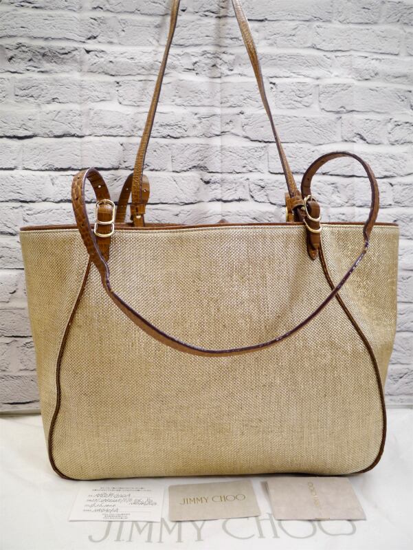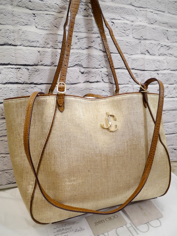 2020美品★JIMMY CHOO ジミーチュウ VARENNE ヴァレンヌ A4対応 ビジネス可 キャンバスxレザー 2way トート ハンド バッグ★ 希少なトート型