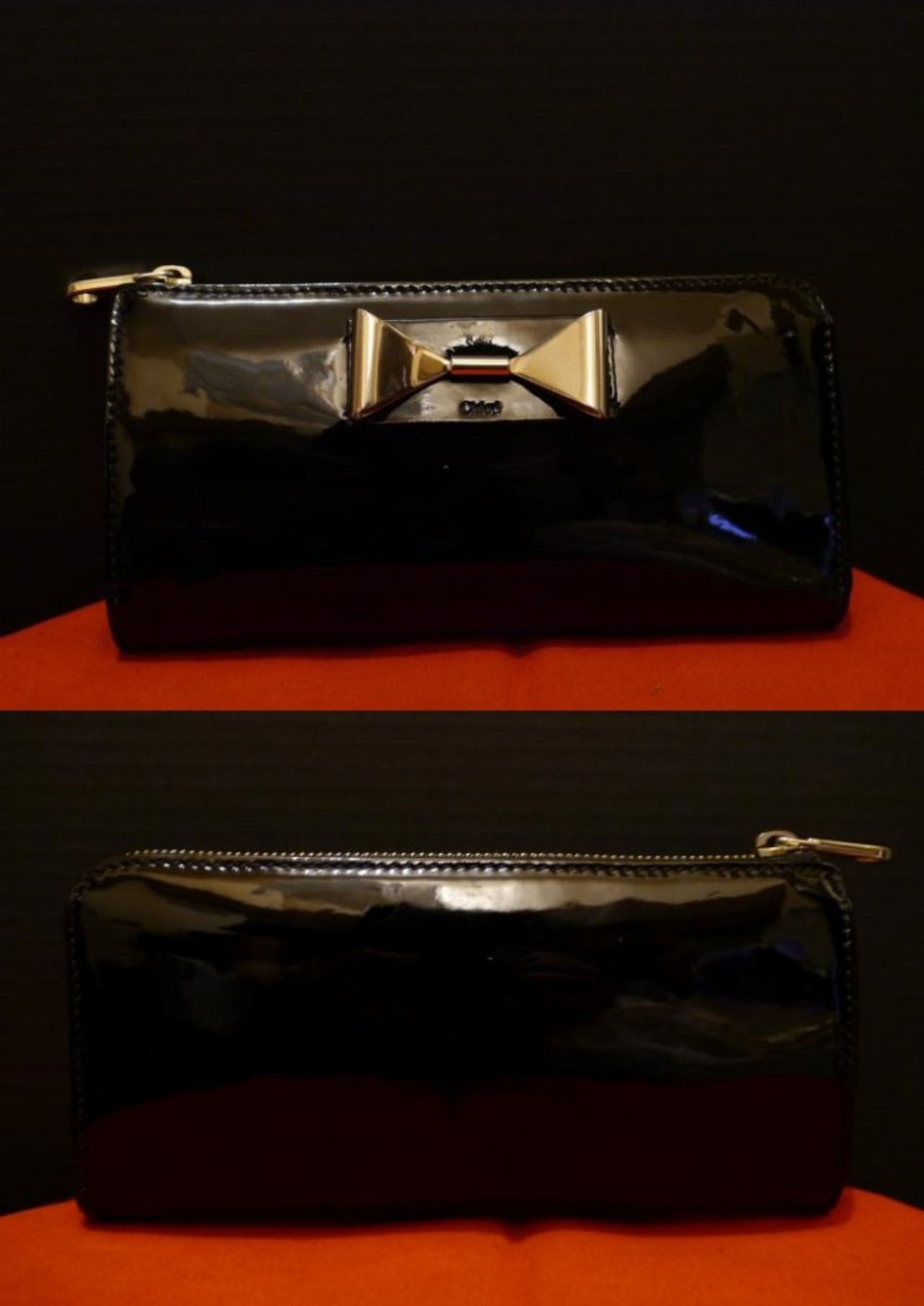 美★Chloe クロエ エナメルリボン 長財布 黒★