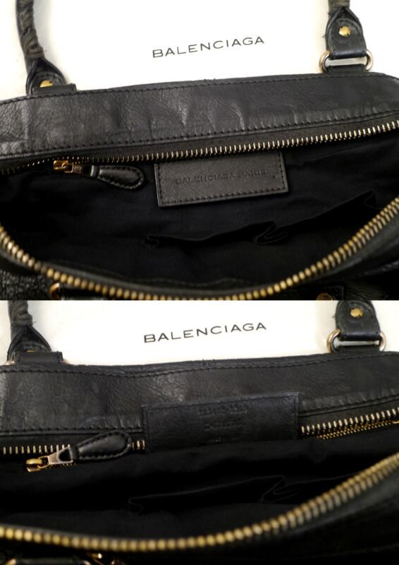 レア◆BALENCIAGA バレンシアガ GIANT WORK ジャイアントワーク A4対応 男女可 レザー トート バッグ 黒x金◆希少なジャイアントスタッズ♪