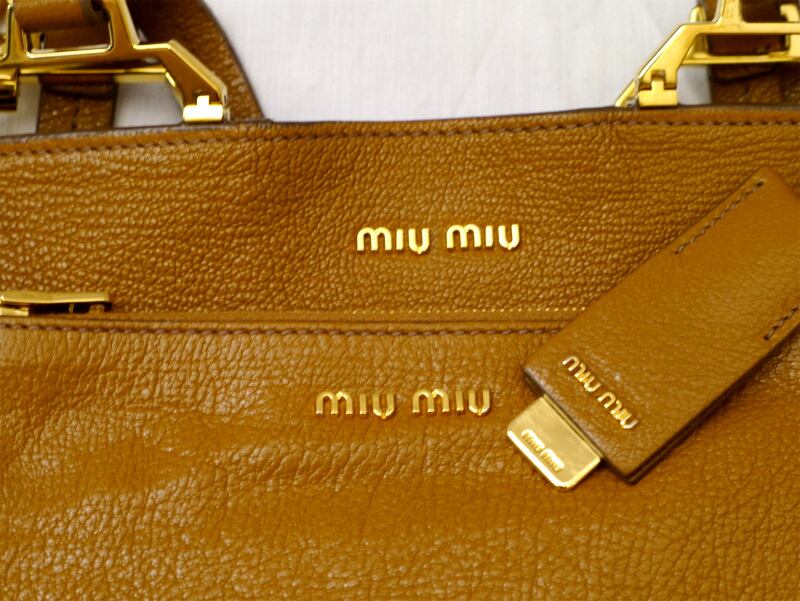 美品★miumiu ミュウミュウ MADRAS マドラス A4対応 レザー トート ハンド バッグ 明茶★ クラシックな雰囲気が可愛らしい定番人気モデル♪
