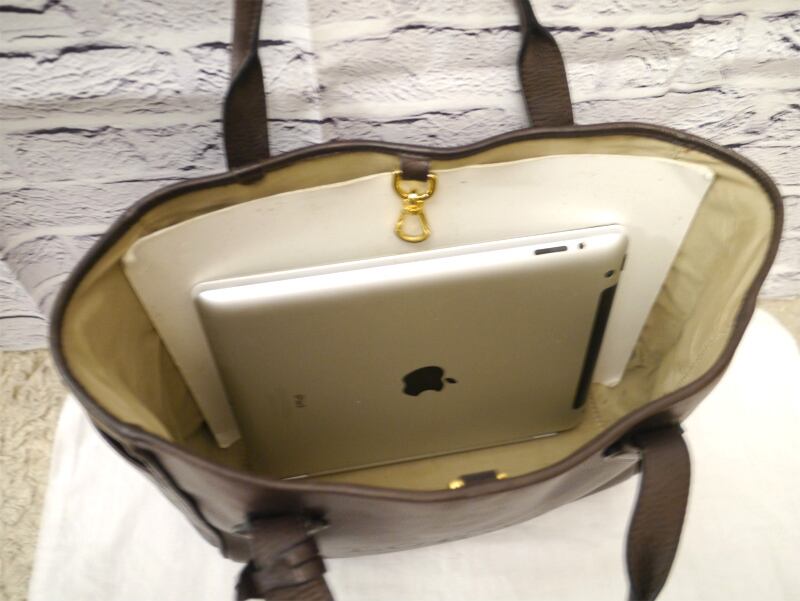 LOEWEらしくしっかりとしたレザーで荷物も入れやすく、A4用紙やタブレット端末もスッポリと収まる絶妙なサイズ感なので活躍のシーンは多岐に渡ります。