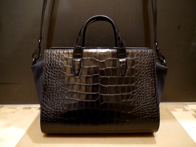 2015美品◆ALEXANDER WANG アレキサンダーワン 男女可 クロコ型押 ハンドショルダー2way パテント レザートート バッグ 黒◆